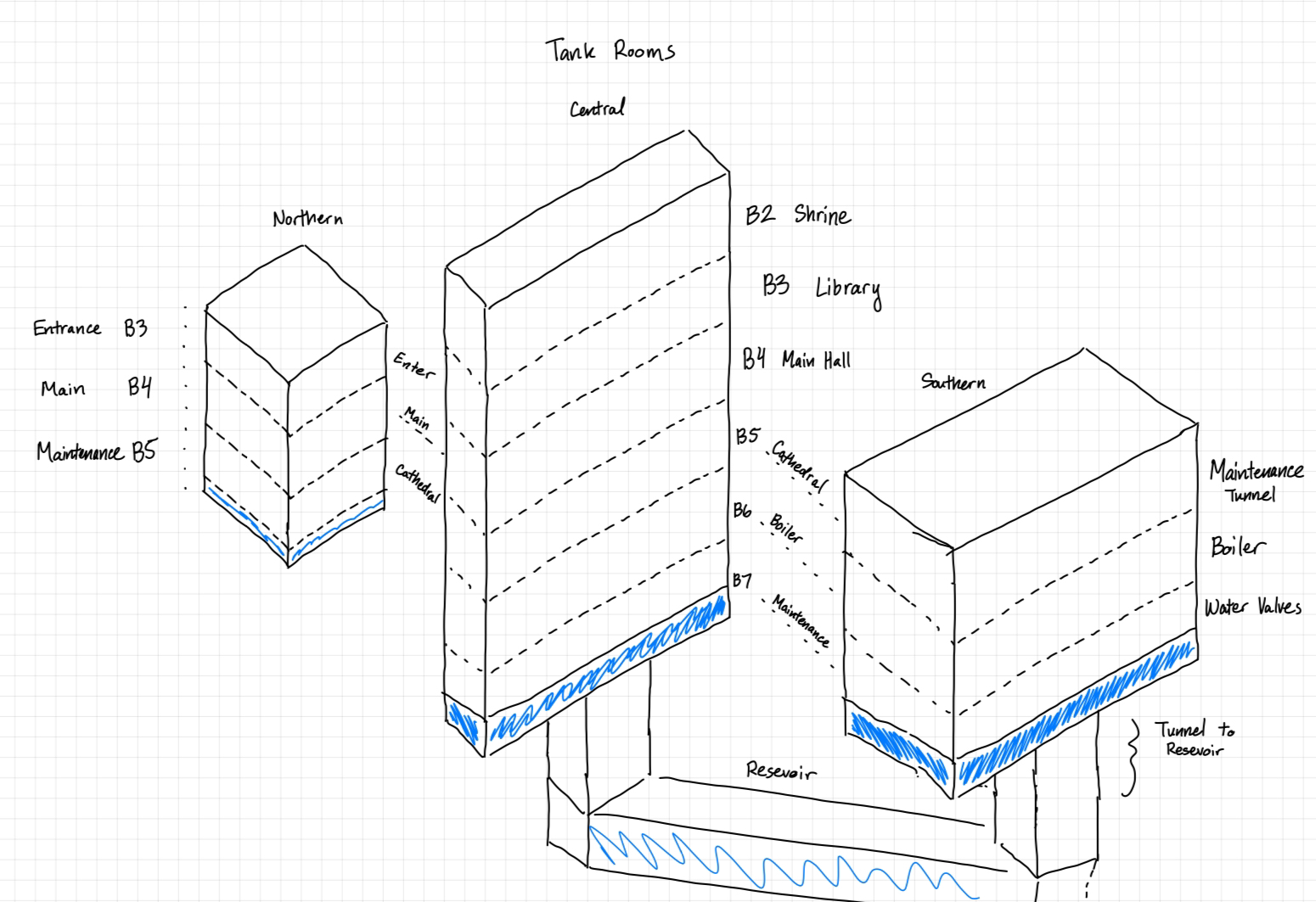 Bloo is looking at the southern tank room, sees a tunnel that has opened