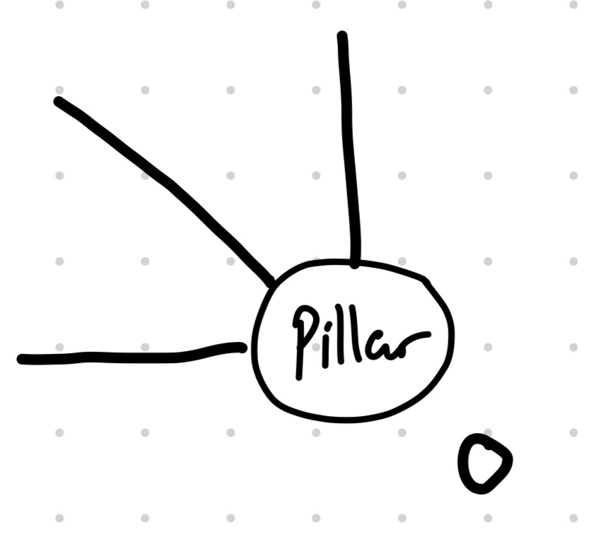 On the floor, there’s dust in a circular shape with 4 prongs, 3 prongs pointing in and a little circle on the other end of the pillar